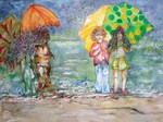 - Onder het genot van het heerlijkste ijs ..........ook nog genieten van mijn in aquarel geschilderde koele dames.