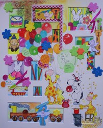 Stichting de nieuwe Kuil is vorig jaar moeten verhuizen van de Hogeweg naar het Gemeente huis van Uitgeest. Op de oude locatie worden nieuwe appartementen gebouwd. Na wat opstartproblemen zijn we daar nu gesetteld. Dit jaar hebben we dan gelukkig weer een kunstroute kunnen organiseren. Op een 11 tal locaties konden exposanten hun werkstukken tentoonstellen. In vergelijking met andere jaren hadden wij een beperkte ruimte voor maar 30 schilderijen van onze cursisten te bewonderen. De verwachtingen waren een iets wat gespannen, maar is een groot succes geworden. Het was prachtig weer en er was genoeg belangstelling Een toevoeging was dit jaar demonstratie schilderen, wat veel belangstelling had en leuke reakties tot gevolg had. Niets is leuker over je hobby te vertellen en hoe het allemaal zo gekomen is. Een vakjury heeft mijn schilderij uitverkoren tot een 3e prijs. "Kleurrijk, fantasyvol ...daar wordt een mens blij van " was haar commentaar. Het resulteerden in een verkoop aan mijn lieve ex collega Ria die van deze dames ook heel vrolijk werd.