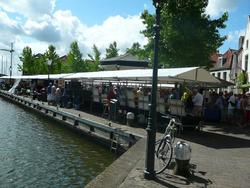 Kunstmarkt Spaarndam 8 augustus 2015. Stands met een groot en afwisselend aanbod aan kunst. Er is werk te zien van diverse kunstenaars, waaronder dit werk van Marion Frieser. Vandaag zaterdag 8 augustus op de kunstmarkt in Spaarndam. In mijn eigen woorden: We zijn de eerste die nog op de verlaten markt onze auto parkeren. Klokslag half 8 om precies te zijn. De zon lacht ons toe.....en dat bleek later niet het enige te zijn. Er was weer veel belangstelling en mooie reacties op mijn werken. Een leuke bijkomstigheid was, dat de organisatie van de Spaarndammer kunstmarkt Paul Marselje, met getoond schilderij mij als blikvanger in het Haarlems dagblad had geplaatst. Vele mensen hadden dit schilderij herkend. Nu prijkt deze in de huiskamer van een aardig echtpaar uit Spaarndam. Verder ging een charmante heer er van door met de schroefhoorn geit. Na het sluiten van de markt hebben we met vrienden een heerlijk etentje genoten en zijn wij moe maar voldaan huiswaarts gekeerd. Hopelijk ga ik mijn fans weer verrassen met nieuwe werken in 2016. Ik bedank jullie allen voor de belangstelling en hopelijk tot volgend jaar. Mochten jullie op de hoogte willen blijven van mijn werk dan is inschrijven op mijn nieuwsbrief zo gedaan. Het kopje nieuwsbrief maakt duidelijk hoe te handelen.